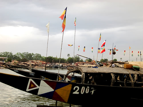 Billeder af tomme restauranter og manglende elektricitet er ikke så spændende, så derfor viser billederne, bådene som stævner ud fra havnen i Mopti. Klik på billederne for at se dem i fuld størrelse.- Bådene langs havnekanten. Uden last ligger de højt i vandet, men på kajen hober bagagen sig allerede op