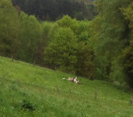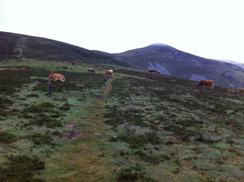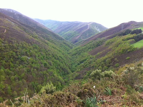 Tilbage på ruten er regnen begyndt. Jeg møder Tim igen, som har spist en sandwich. Han skal ikke så langt og fortæller, at hans bror snart kommer. Da han hører om hulerne, beslutter han, at han vil besøge dem senere med toget fra Oviedo.