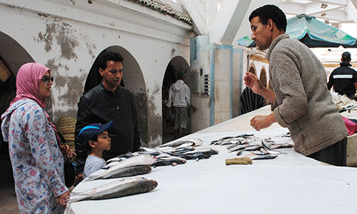 - Det er ved at være lukketid på fiskemarkedet i Essaouira
