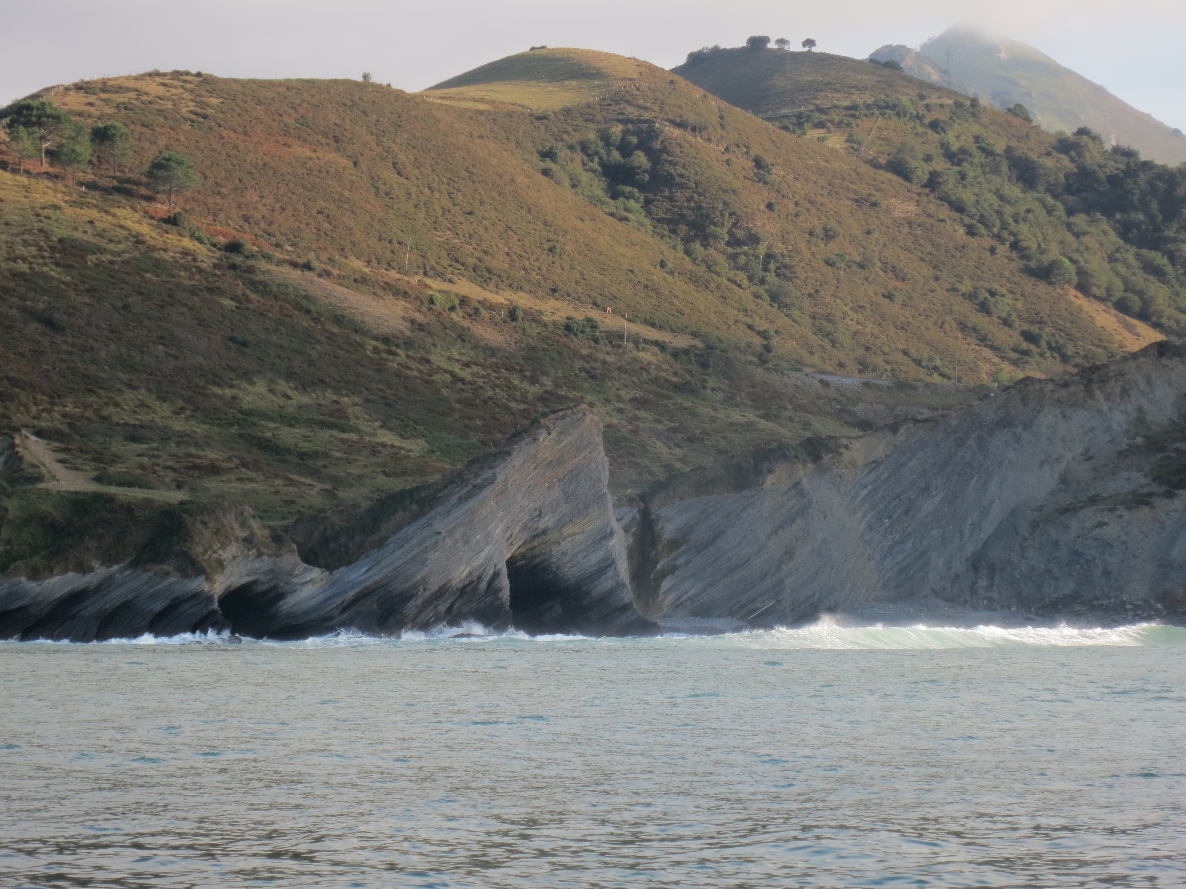 Vi var omkring 30 ombord. En guide fortalte, at turen ud og hjem ville blive helt anderledes, og det fik hun ret i. På udturen talte hun om de traditionelle erhverv i kystens små byer. I Zumaia var den sidste fiskerbåd holdt op for mindst 20 år siden. Det forklarede, hvorfor byens restauranter til min skuffelse næsten ikke havde fisk på menuen, og den fisk jeg endelig fandt, mindede om en portion frossen fisk. Fiskeriet havde aldrig været stort i Zumaia. Byerne havde oprindeligt levet af hvalfangst, skibsbyggeri og mange havde arbejdet som søfolk.
