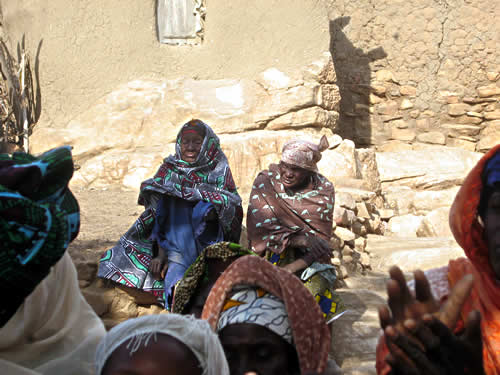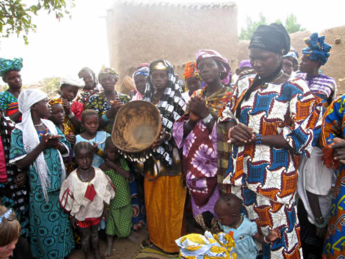 Der bliver udvekslet musik og sange, da jeg tager musikeren Solveig Sandnes, hendes datter Vilma og filminstruktøren Stine Exler med til den isolerede dogonlandsby Biry