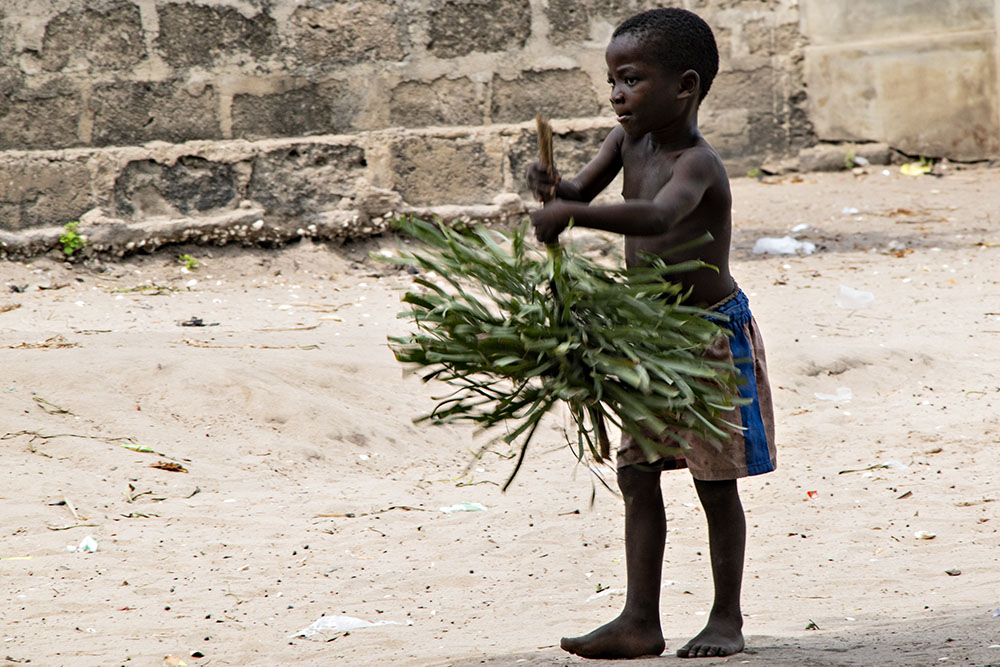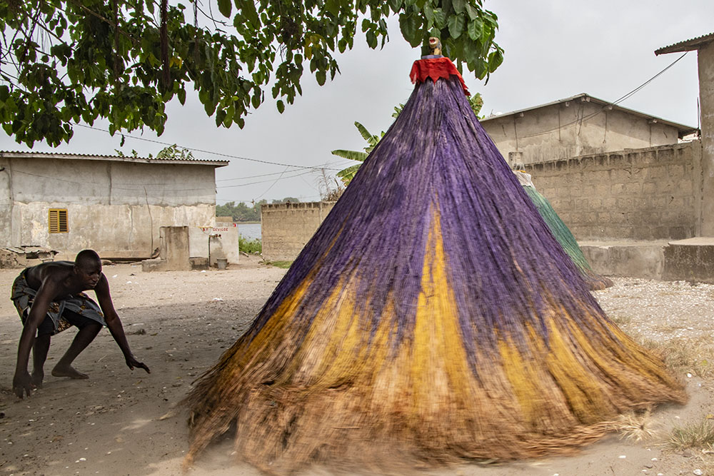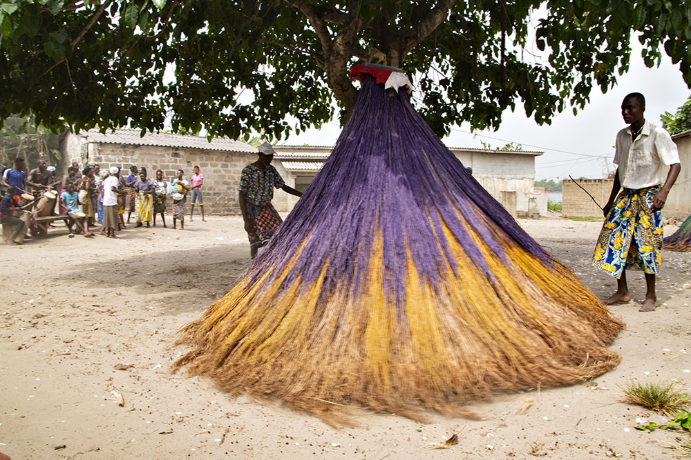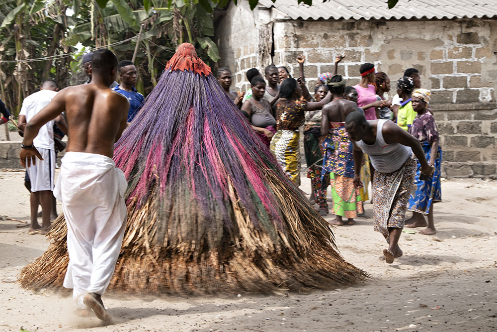 På øen bliver vi modtaget af en zangbeto. En næsten to meter høj og farvestrålende figur i strå. Det kunne være en udsmykket høstak, men da to mænd råber til den, begynder den at bevæge sig i en glidende bevægelse, som svævede den gennem landsbyens gader. Zangbetoen bliver fulgt af et orkester, som spiller på trommer og andet slagtøj. Vi går med og ender ved et zangbeto-tempel.