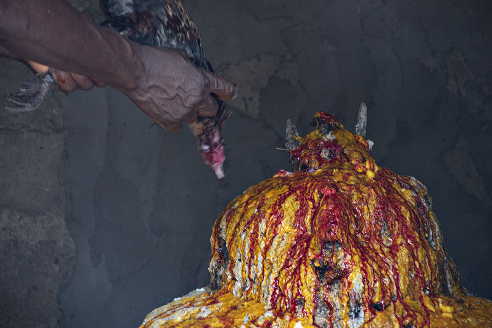 - Blodet fra hanen bliver smurt på indgangen til Zangbetos tempel
