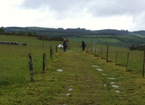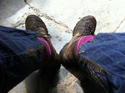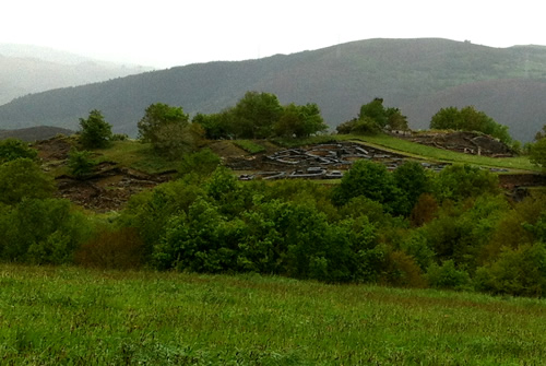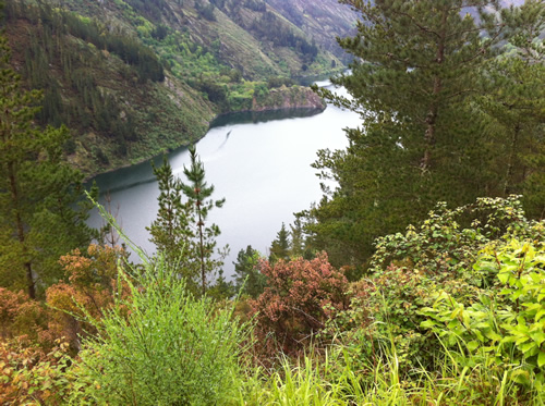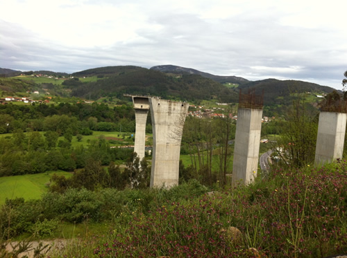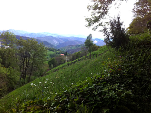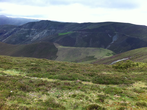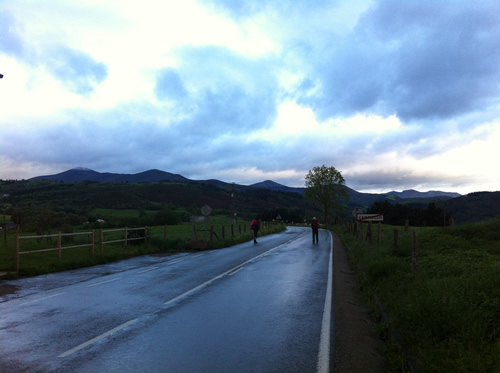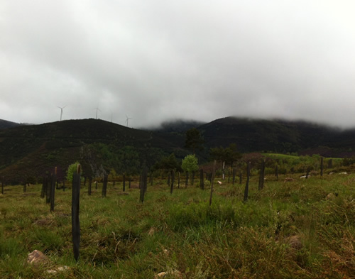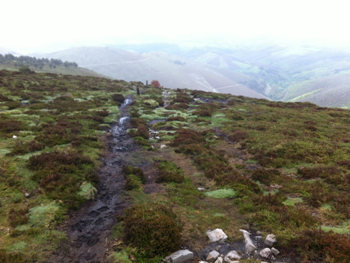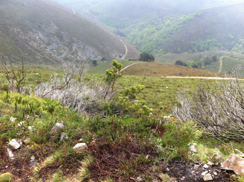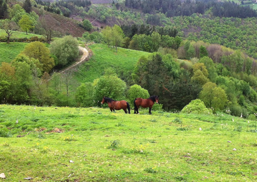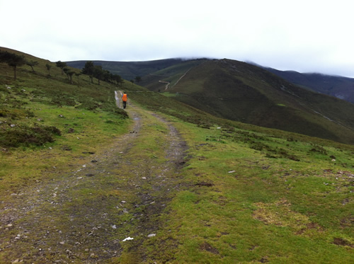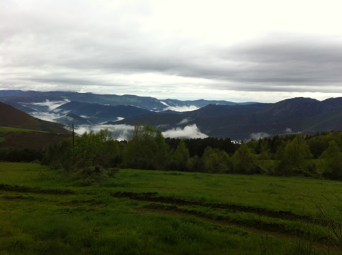 Tilbage på ruten er regnen begyndt. Jeg møder Tim igen, som har spist en sandwich. Han skal ikke så langt og fortæller, at hans bror snart kommer. Da han hører om hulerne, beslutter han, at han vil besøge dem senere med toget fra Oviedo.