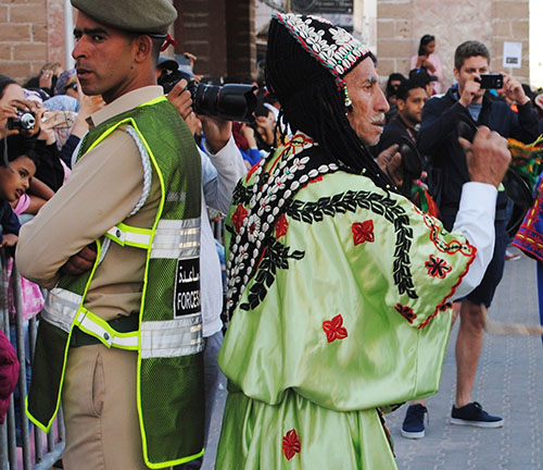 Festivalen i Essaouira har omkring 100.000 deltagere. Her er hverken mudder eller fulde mennesker. I stedet møder man en blanding af marokkanske unge og familier med små børn og bedstemor i kørestol blandet op med et internationalt publikum.