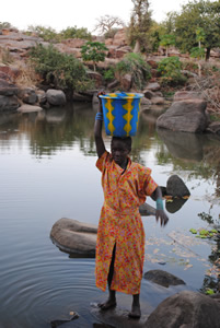 Vi standser ved et vandløb for at slukke tørsten i det under 10 centimeter lave vand. Lamenata begynder med at vaske sig og spørger, om det kan være rigtigt. I Bamako er man omhyggelig med sit drikkevand, så hun undrer sig. Men da hun er tørstig, og der ikke er andet at drikke, er hun nødt til det.