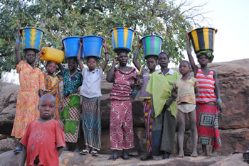 Vi begynder vandreturen i højt tempo. Salimata og Monatou vil gerne hurtigt frem for at undgå at bære så lang tid.
