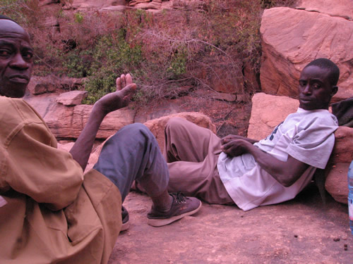 – Mæh, mæh, råber Ounde efter os. På den lokale dogondialekt betyder det, at vi skal tage det roligt, så han kan følge med.