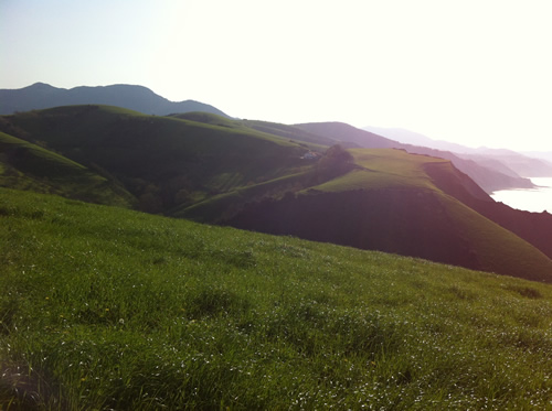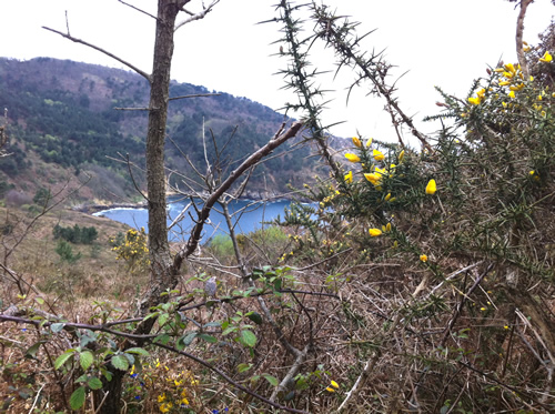 - Der går en vandresti øverst langs kysten