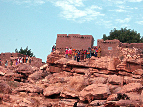 Vi kører mod nord fra Bandiagara, hovedbyen i dogonområdet midt i Mali. Der er 80 kilometers kørsel, selv om der ikke er så langt i luftlinie. Men området består af klipper og dybe klippespalter vekslende med flade vindblæste sletter med enkelte buske. Jeg skal se, hvilken indsats områdets landsbyer selv har gjort for at forbedre vejen. Og bortset fra en kort strækning, som ingen landsbyer åbenbart regner for deres nærområde, er der blevet fjernet og knust sten, fyldt huller og støbt fundament over de dybeste vandløb.